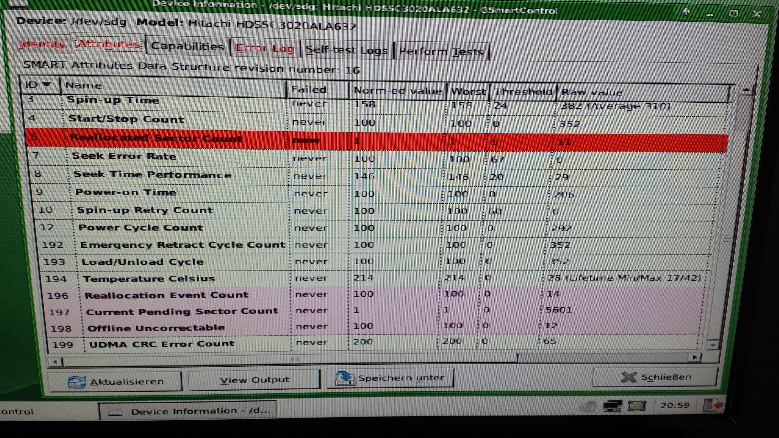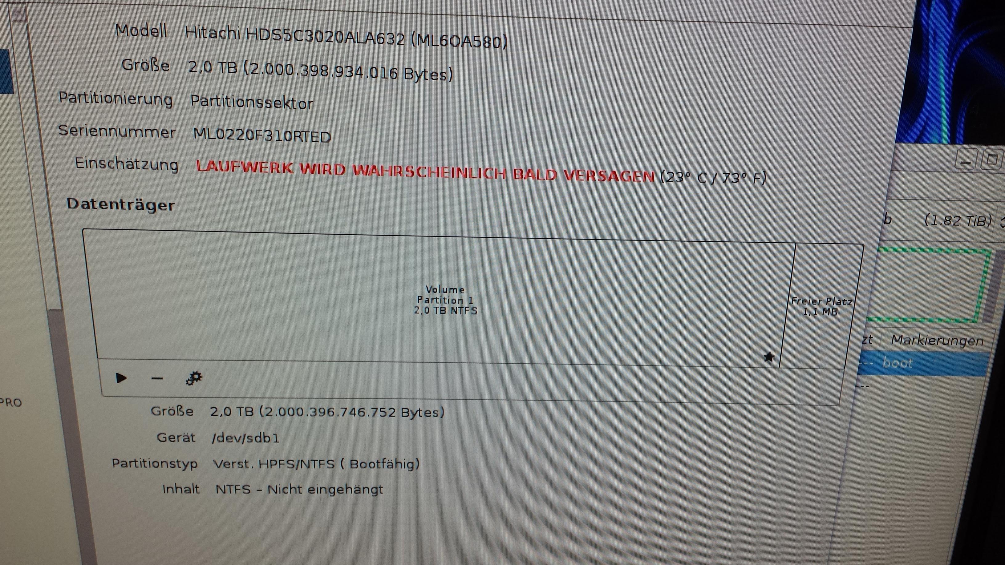 Seit kurzem wurde mir die Festplatte als gefährdet angezeigt. Sie schlägt alarm.