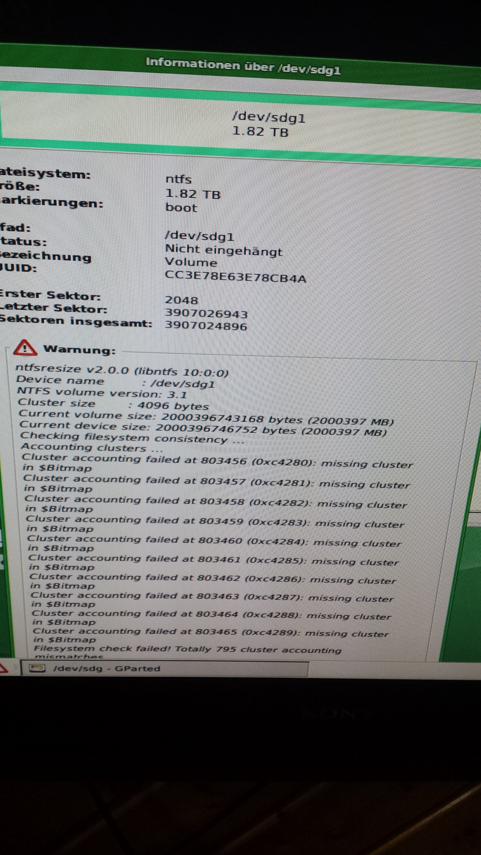 Ich möchte nun noch den Rest der Daten bekommen, aber die restlichen Daten sind anscheinend beschädigt. Unter Linux/Ubuntu lassen sich die Dateien nicht kopieren bzw. ansehen [System hängt sich auf]