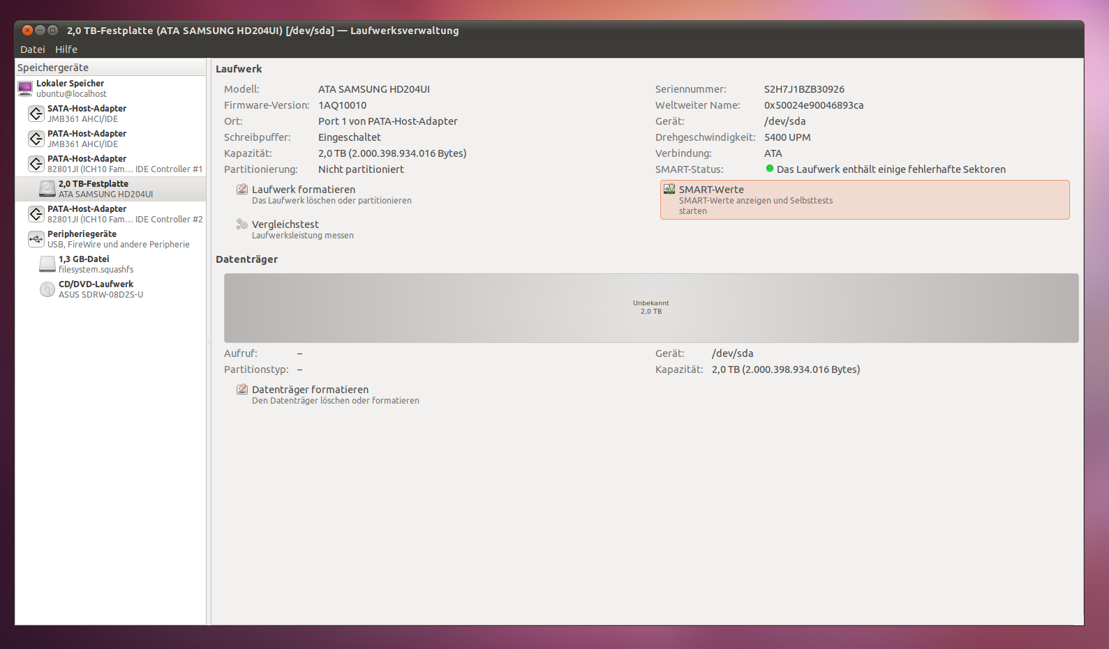 In der Laufwerksverwaltung wird der Datenträger zwar erkannt, aber es scheint eine Fehlermeldung von defekten Sektoren auf. Jetzt brauch ich eure Hilfe, was kann ich als Linux-Laie (kaum Erfahrung mit der Shell) nun machen?