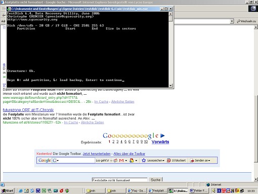 Hab Teskdisk durchlaufen lassen - anbei die Ergebnisse !