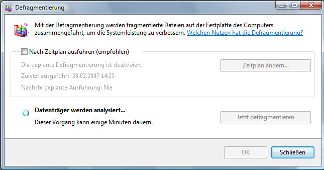 Hat nichts gebracht. Auch habe ich wegen Defragmentierung gesucht, allerdings steht diese auf einmal die Woche.