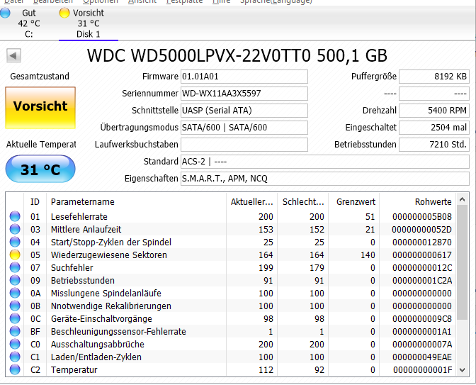 Die Festplatte wurde unter "dieser PC" nicht angezeigt, ich bin darauf hin nach weiterem langem suchen in Google in die Computerverwaltung und dann unter Datenträgerverwaltung, dort war die Festplatte zwar aufgelistet jedoch steht dort "nicht initialisiert", beim versuch zu MBR oder GPT zu initialisieren steht dort nach langem Lade-Symbol "unzulässige Funktion". Habe weiter nachgelesen und versucht die Partitionen selber zu erstellen, kostenpflichtige Programme oder es passierte nichts, da die meisten Programme die Festplatte nichtmal gefunden haben.
