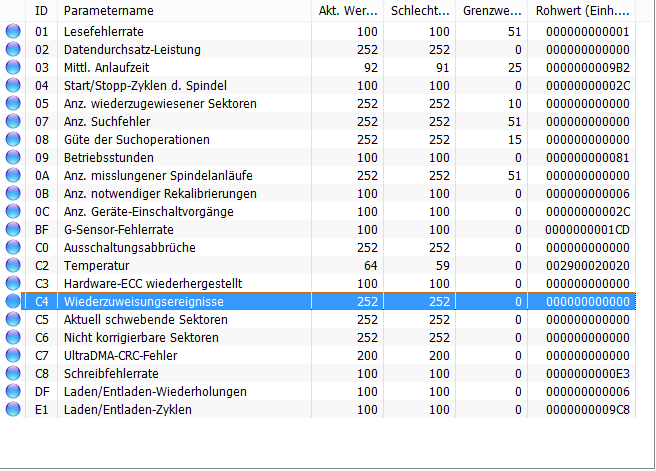 nein alles in ordnung. wichtig ist, was als "Rohwert" angezeigt wird. um was fuer eine festplatte handelt es sich denn?