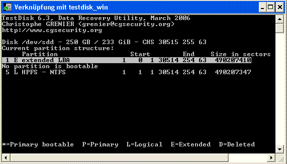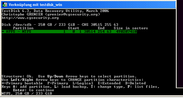 Poste mal bitte immer das komplette Fenster von Testdisk, damit ich seh, wo du z.Z. bist und die unteren Infos können manchmal auch etliches aussagen.