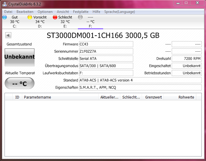 Hab dann mal mit ChrystalDiskInfo geguckt wie der Status der Platte ist, doch alles was ich sehen kann quasi nix...
