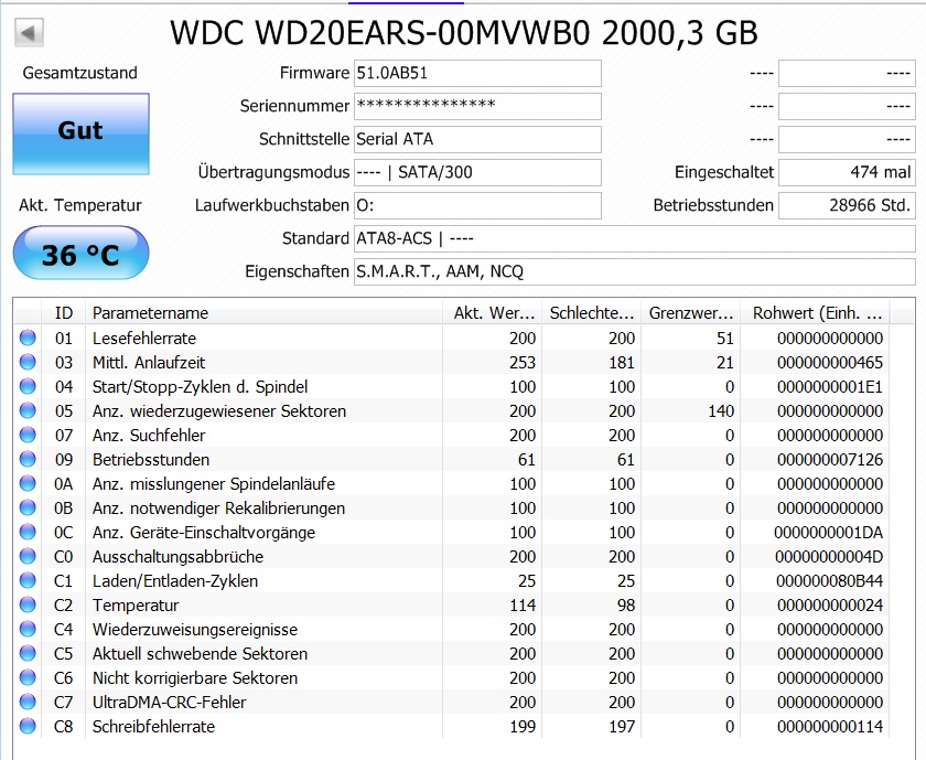 Was ich verdächtig finde ist, dass bei versuchtem Zugriff auf die Platte z.B. mit HDtune die Festplattenzugriffsdiode am Computer dauerhaft volle Helligkeit hat..