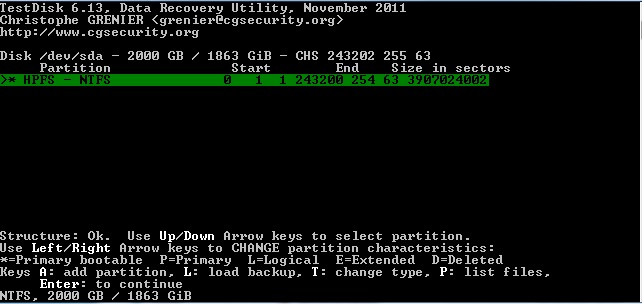 TestDisk 6.13, Data Recovery Utility, November 2011