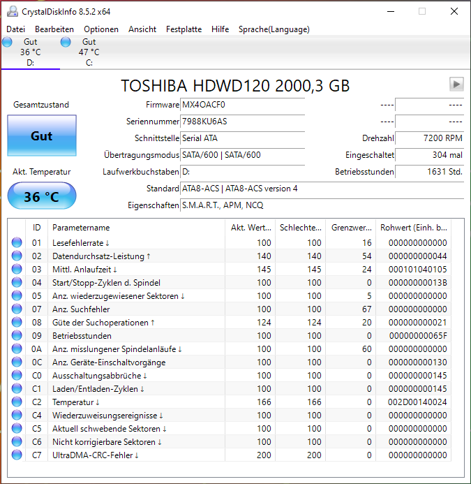 Ich hab schon ziemlich lange dieses Problem. Beim installieren eines Spieles hinterlässt meine Festplatte ( Toshiba 2TB) ein kratziges Geräusch. Ist das normal? Und kann man das irgendwie umgehen? Die Geräusche dauern ca. 3 Sekunden jedesmal an und hören für 1 Sekunde kurz auf. Bitte um Hilfe.