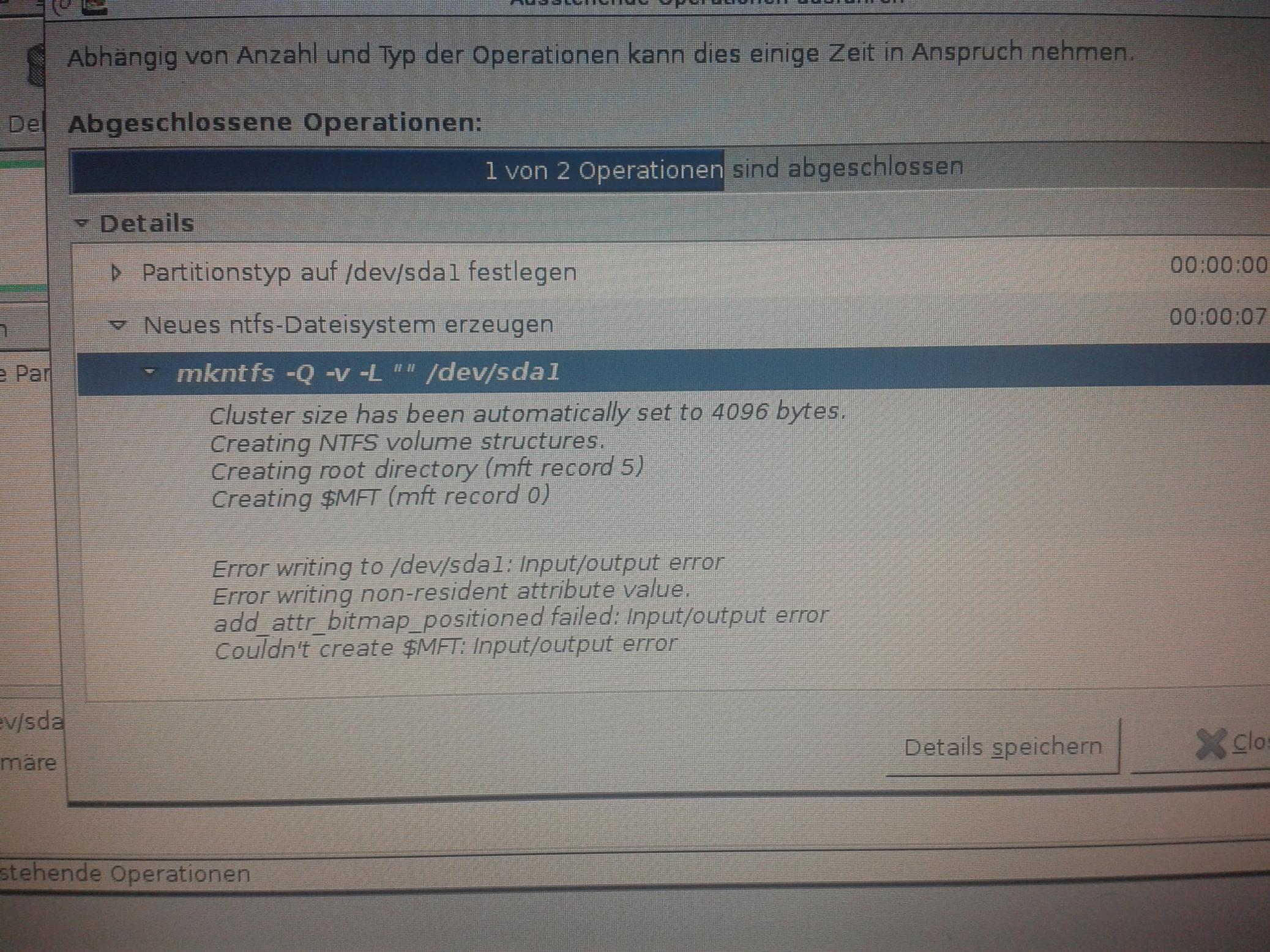 Richte die Platte mit "PARAGON" ein - es wird irgendetwas bei GParted falsch gemacht