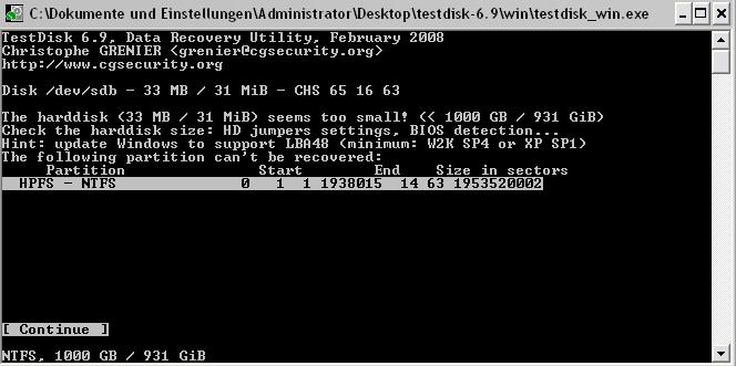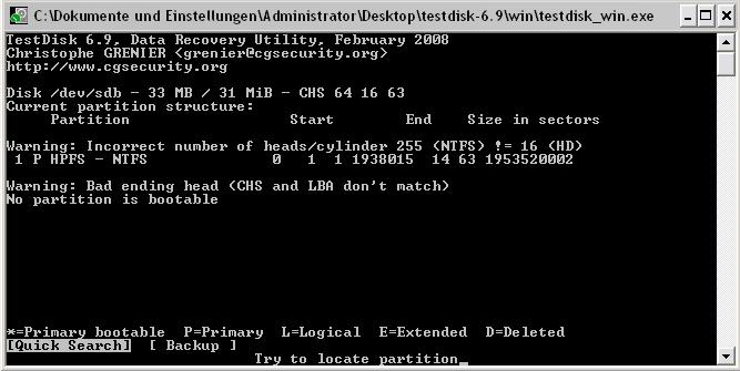 Die Festplatte, eine 1TB WD GP wird auf einmal als nicht formatiert erkannt und hat nur die Grösse von 33MB, sowohl laut Testdisk als auch laut des Datenträgermanagements. Ich habe als OS hauptsächlich Windows Vista HP 64 Bit, habe aber auch Testdisk unter XP mit SP2 laufen lassen und komme zu den gleichen Ergebnissen. Im BIOS habe ich alles mir Erdenkliche versucht und auch die Standardeinstellungen geladen, jedoch keine Besserung. Drei SATA-Kabel versucht und ebenfalls nichts erreicht. Verschiede Steckplätze haben nichts geholfen, und mit Jumpern könnte ich nur Stromsparfunktionen und ''Spectrum Clocking'' oder so aktivieren.