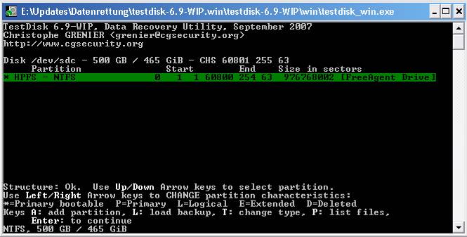 Mache mir mal dieselbe Diagnose mit Testdisk, um zu prüfen ob noch etwas gemacht werden kann, oder du Datenrettungssoftware benötigst.