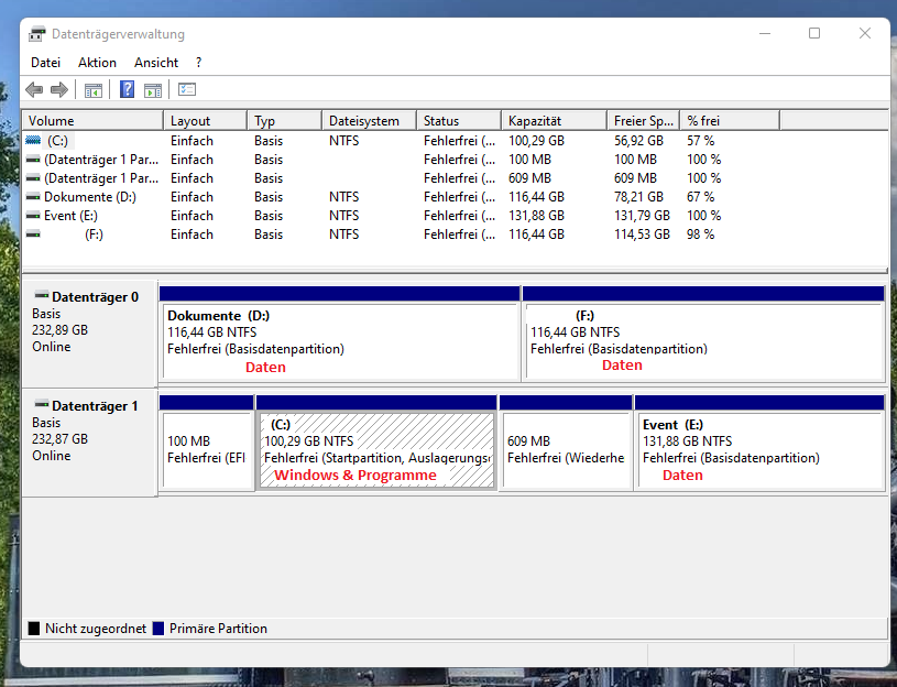 So brauchst du, im Falle eines Totalcrash`s immer nur Windows und Programme neu zu installieren.