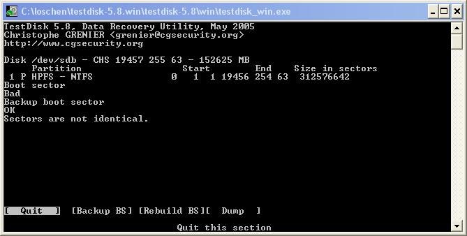 Ungleaublich. Ich bin einfach nochmal auf Backup BS gegangen und habe danach Testdisk beendet. Warum auch immer hat es jetzt funktioniert. Und das obwohl wir (bzw. du) alles nur wiederholt haben.
