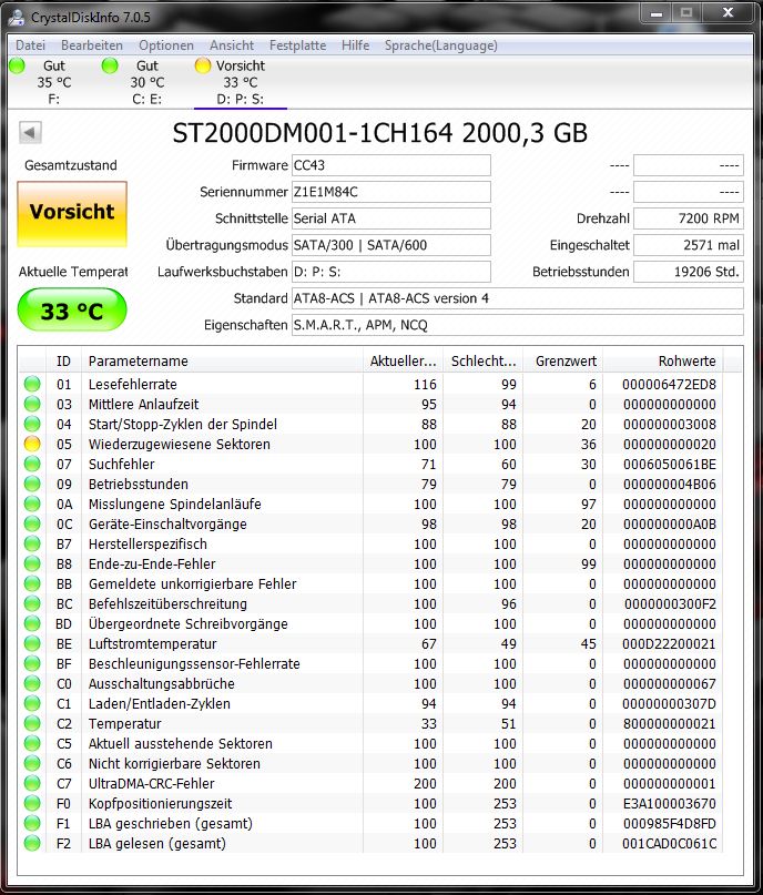 ich hatte gerade ein Kurioses Problem und möchte gerne wissen ob ich mich auf einen Festplattenausfall vorbereiten sollte.