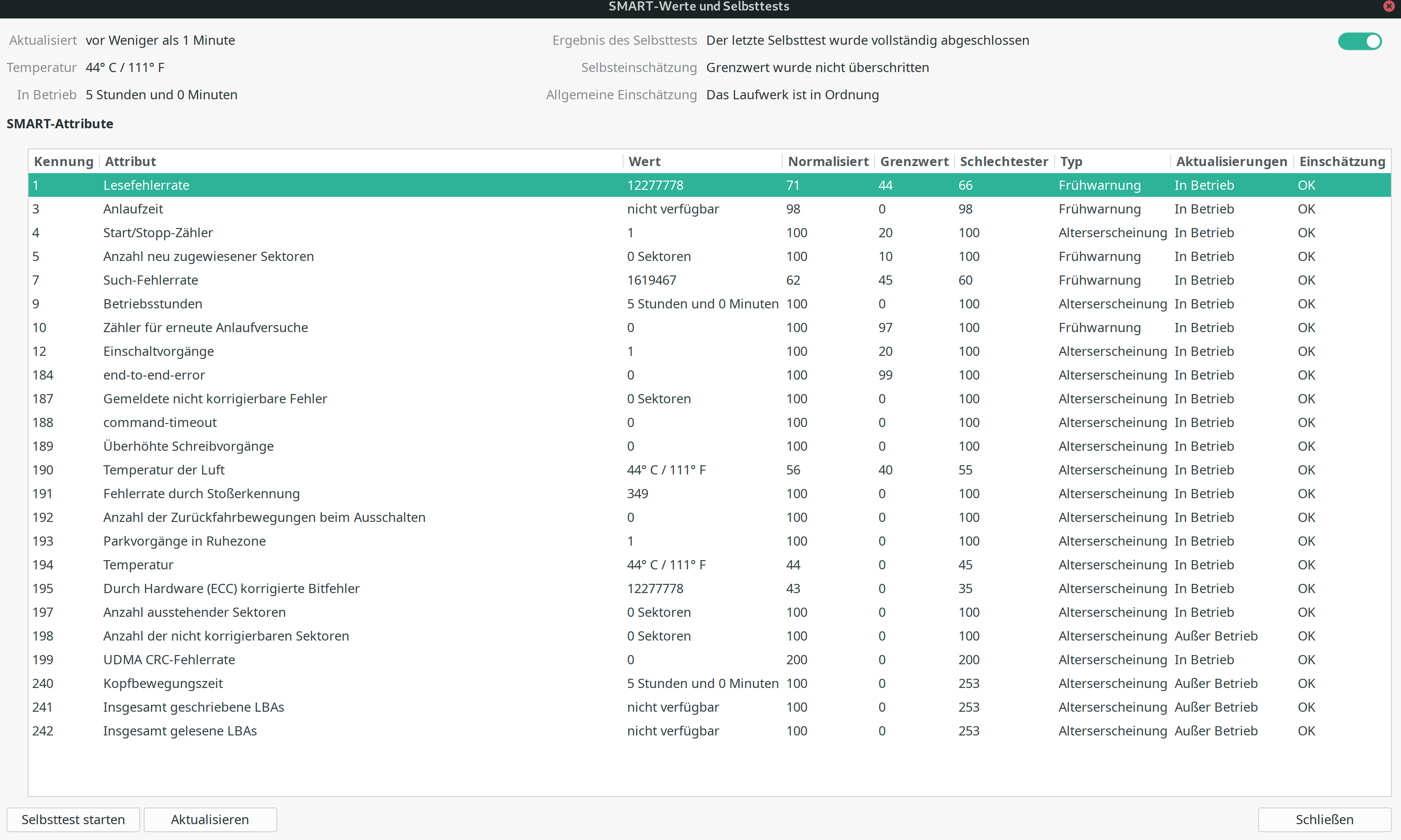 Außerdem schauen die S.M.A.R.T.-Werte der Seagate irgendwie komisch aus, was die Lesefehlerrate betrifft.