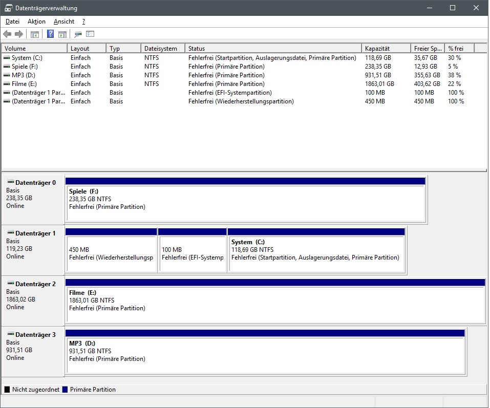 In meiner Datenträgerverwaltung sieht das Ganze so aus: