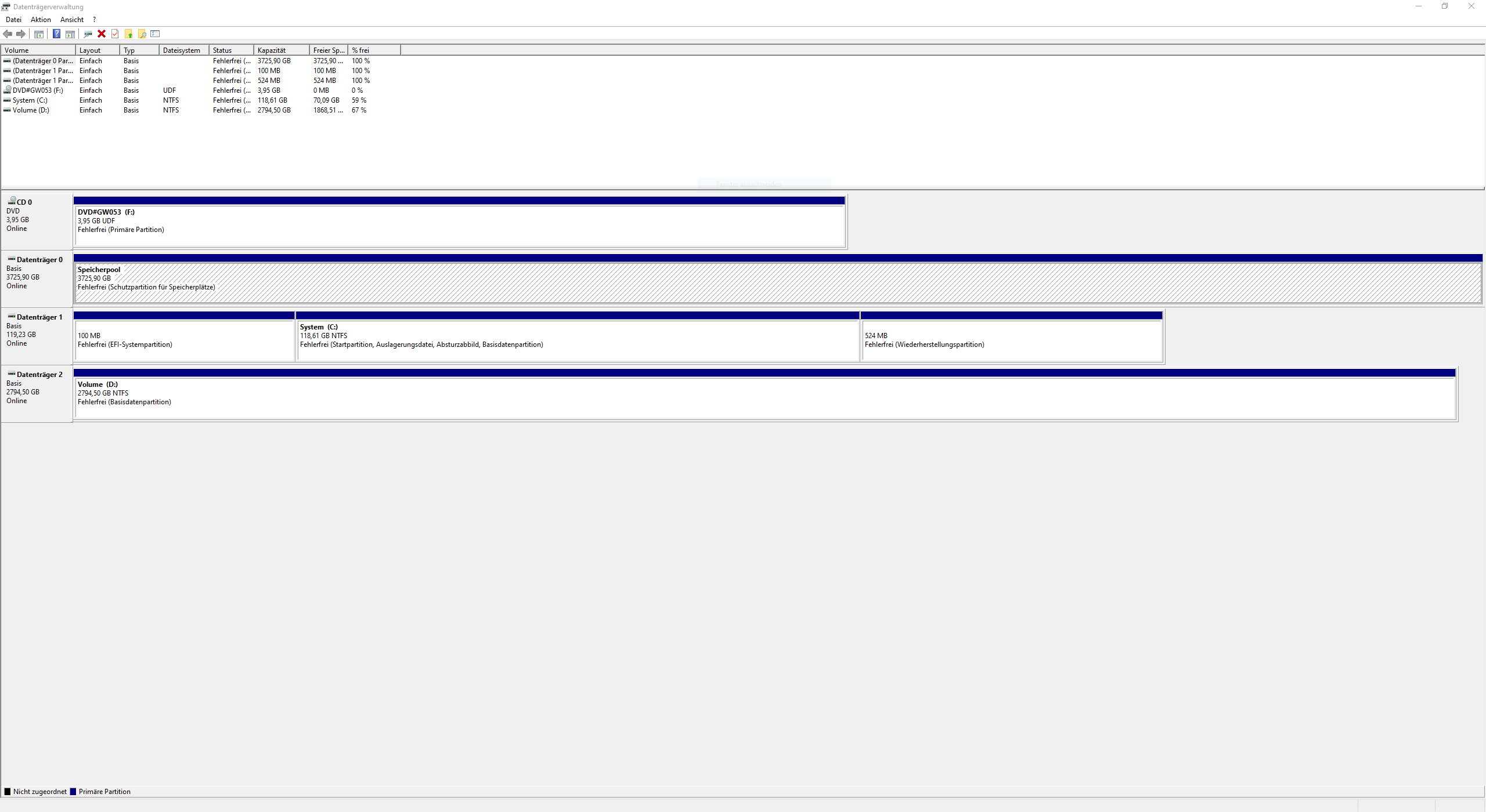 Nun zeigt er mir aber bei der NVME Festplatte (4 TB) (welche nur für Spiele benutzt wurde) dass diese als Speicherpool benutzt wird und dadurch kann ich nichts machen (siehe Anhang).