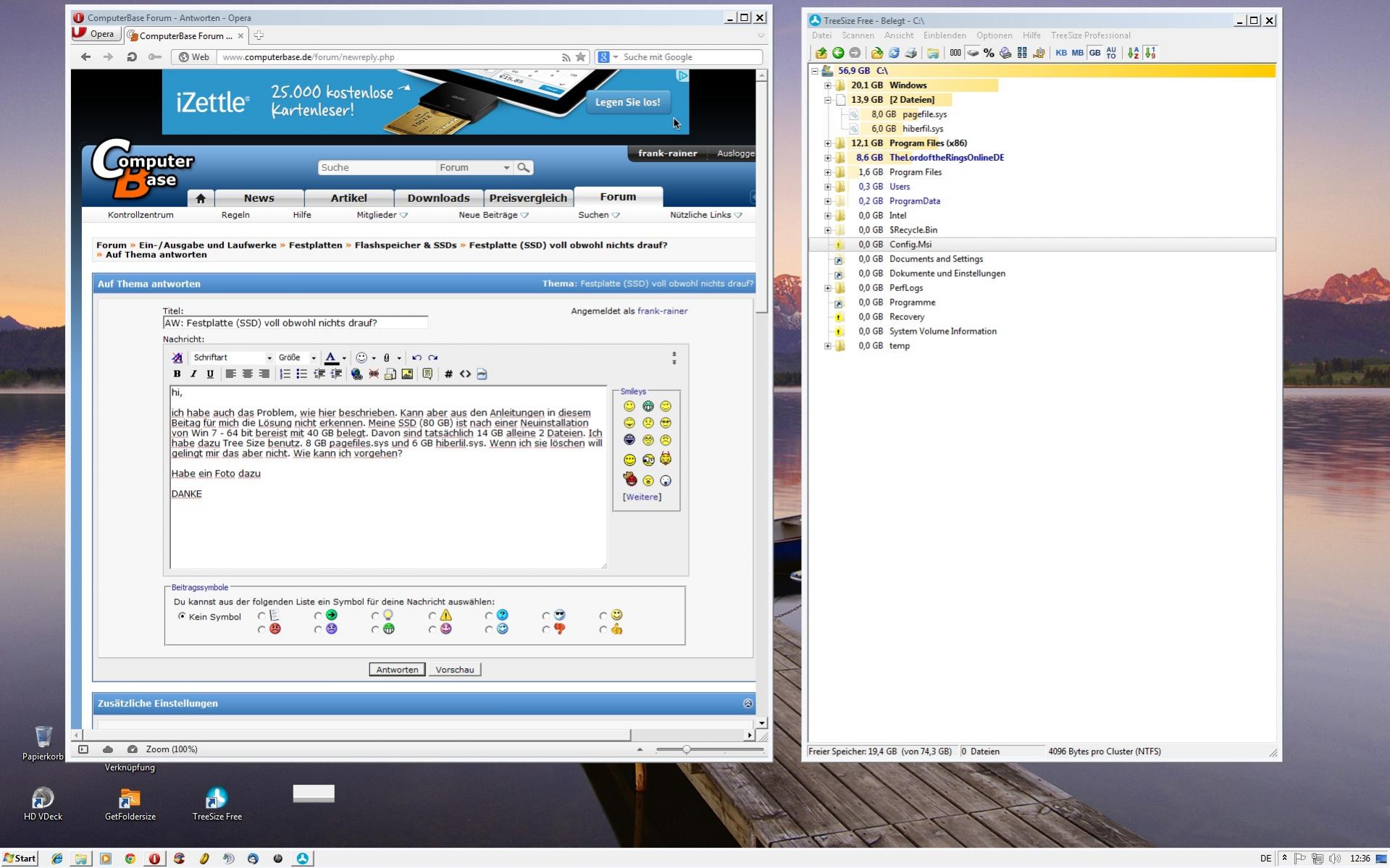 Siehe Anhang. Versteckte und Systemdateien werden im Explorer angezeigt. Es handelt sich um eine SSD und eine Windows Server 2012 Installation. SSD ist eine Crucial M4 128GB.