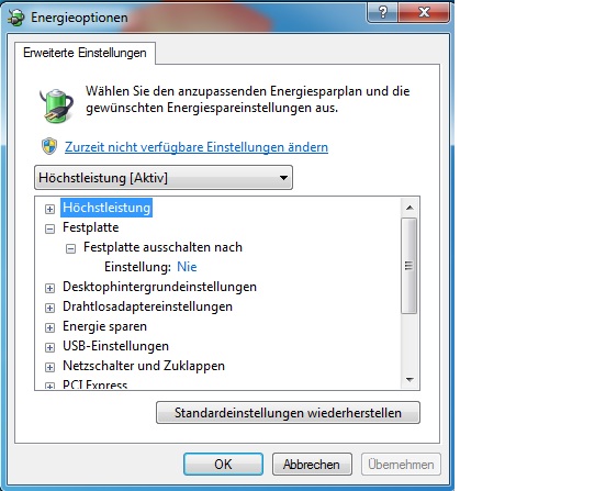 Also wenn ich z.b. auf die Festplatten selber gehe odar ein Program starte was auf der platte liegt, macht sie erst klick und dann hört es sich an als würde sich starten. bzw. drehzahl eröhen. Und das "friert" den ganzen PC fuer etwa 7 bis 8 Sekunden.