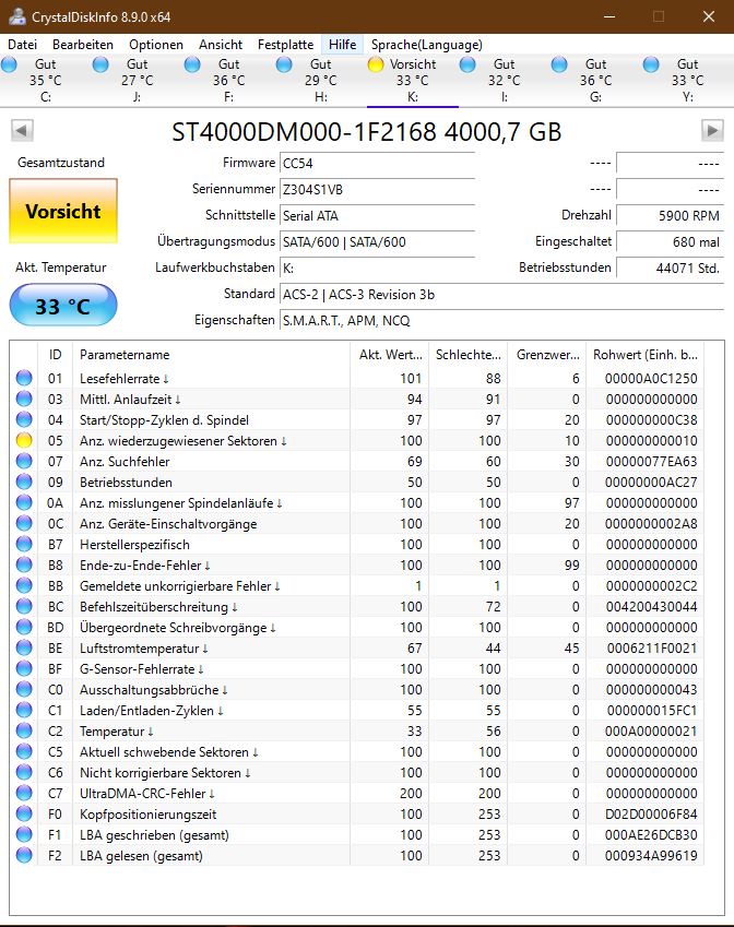 Meine 4TB Seagate (ST4000DM000) scheint im sterben zu liegen.