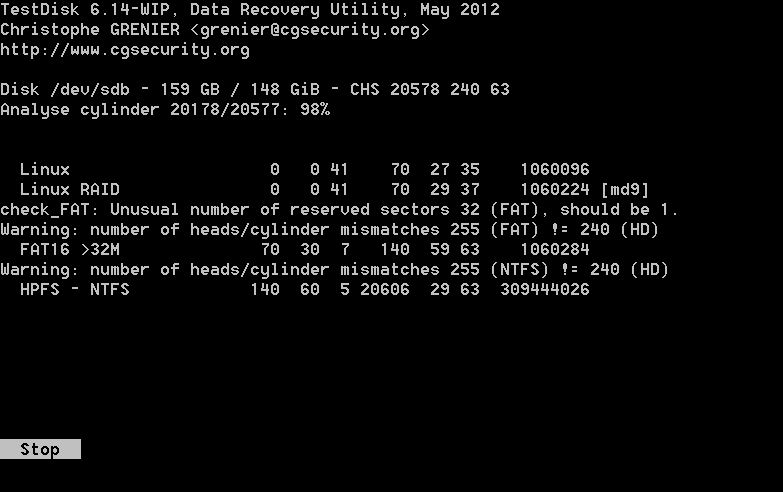 Du darfst dann Testdisk nicht beenden da du dann die Einstellungen verlierst.