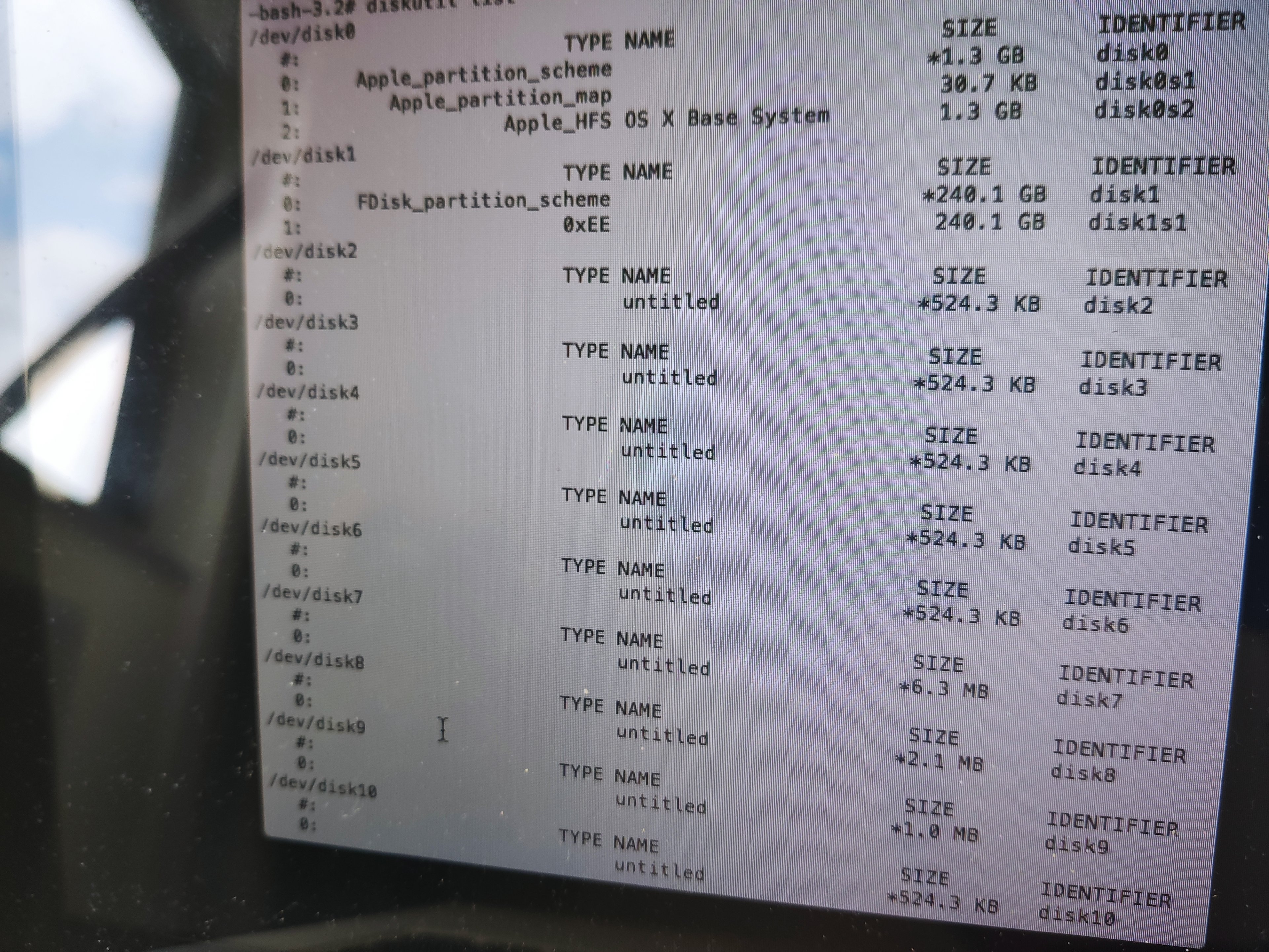 Wenn du das startest und "diskutil list" eintippst, listet er dir dann eine Disk auf? Und wenn ja, etwas das der SSD entspricht?