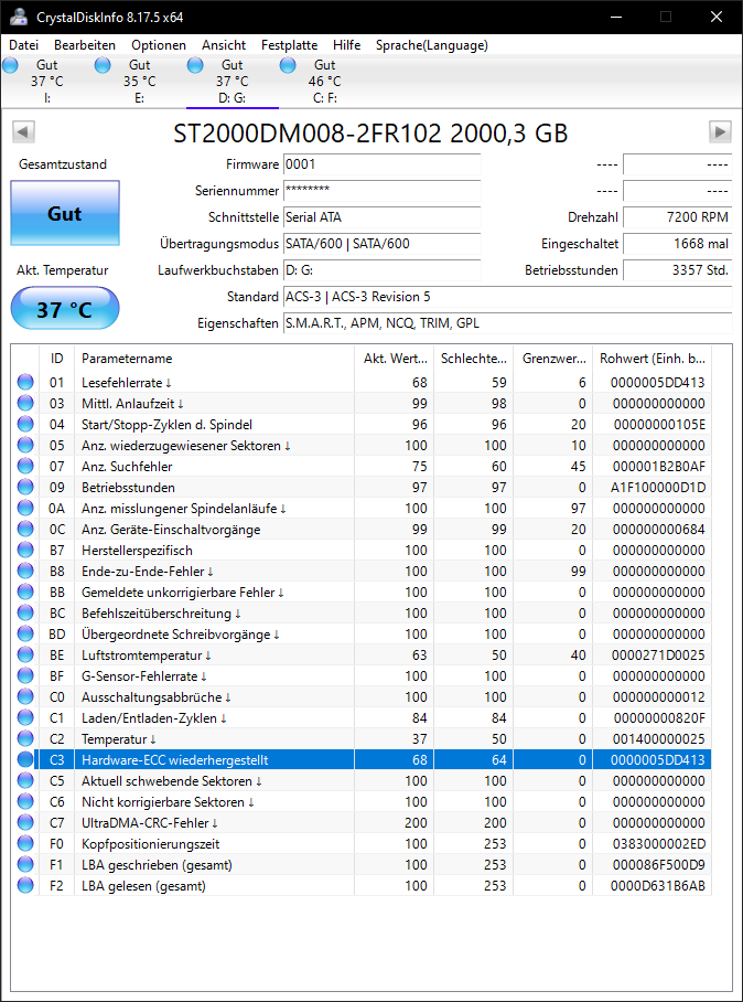 Die Smart Werte von CDInfo und den Seatools sind identisch.