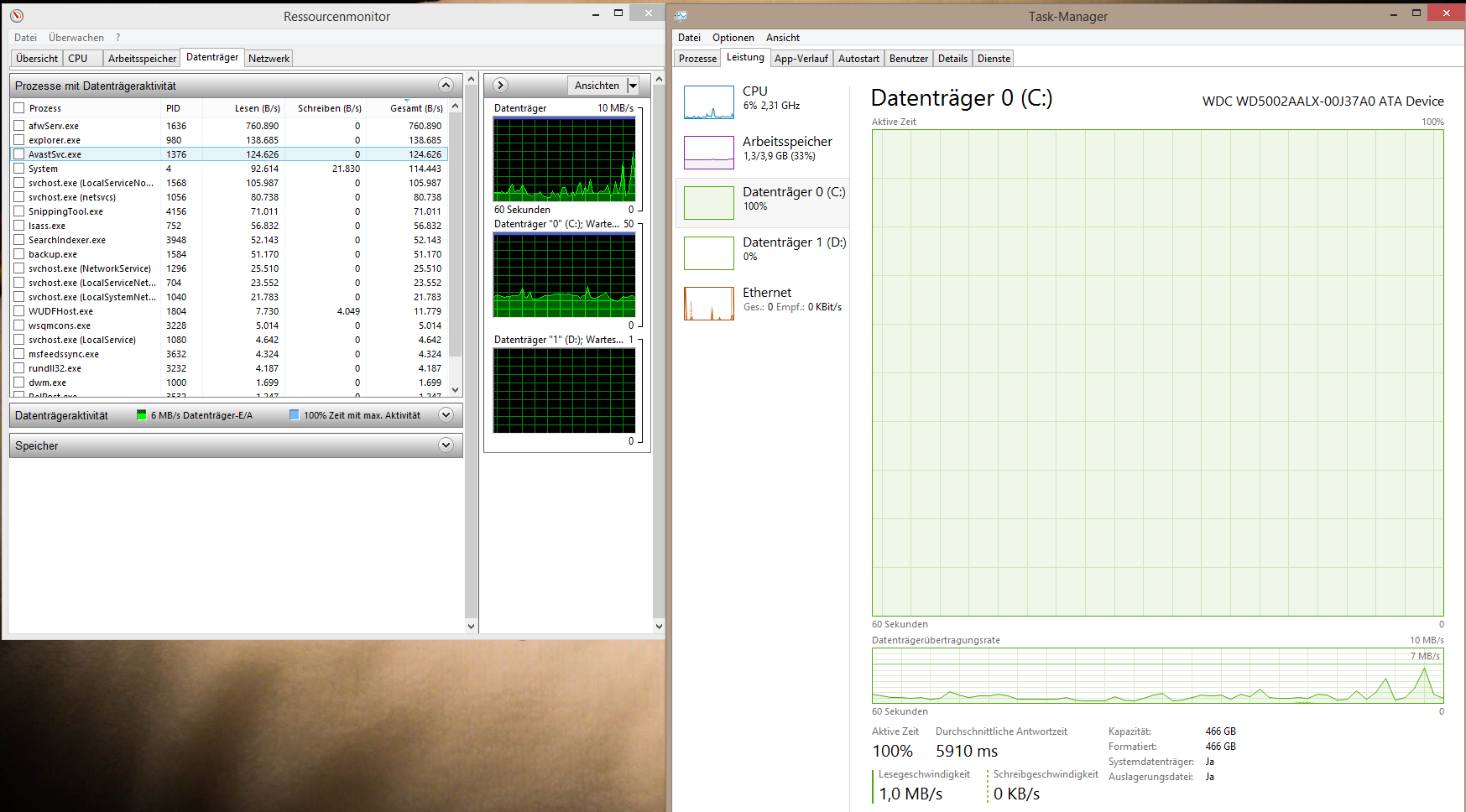 Ich habe eigentlich keine Probleme mit meinem System, doch meine Festplatte springt sehr oft auf 100% hoch. Vor allem beim Hochfahren dauert es bis zu 10 Min.