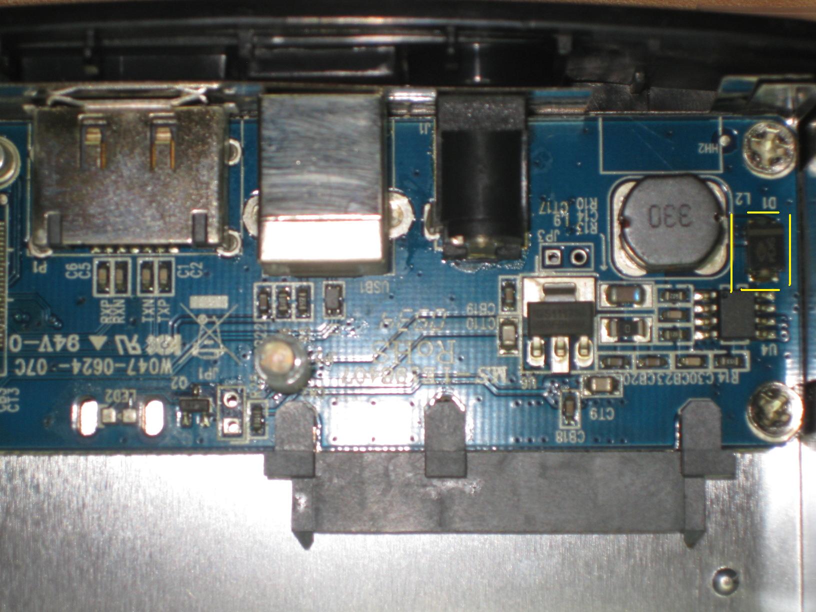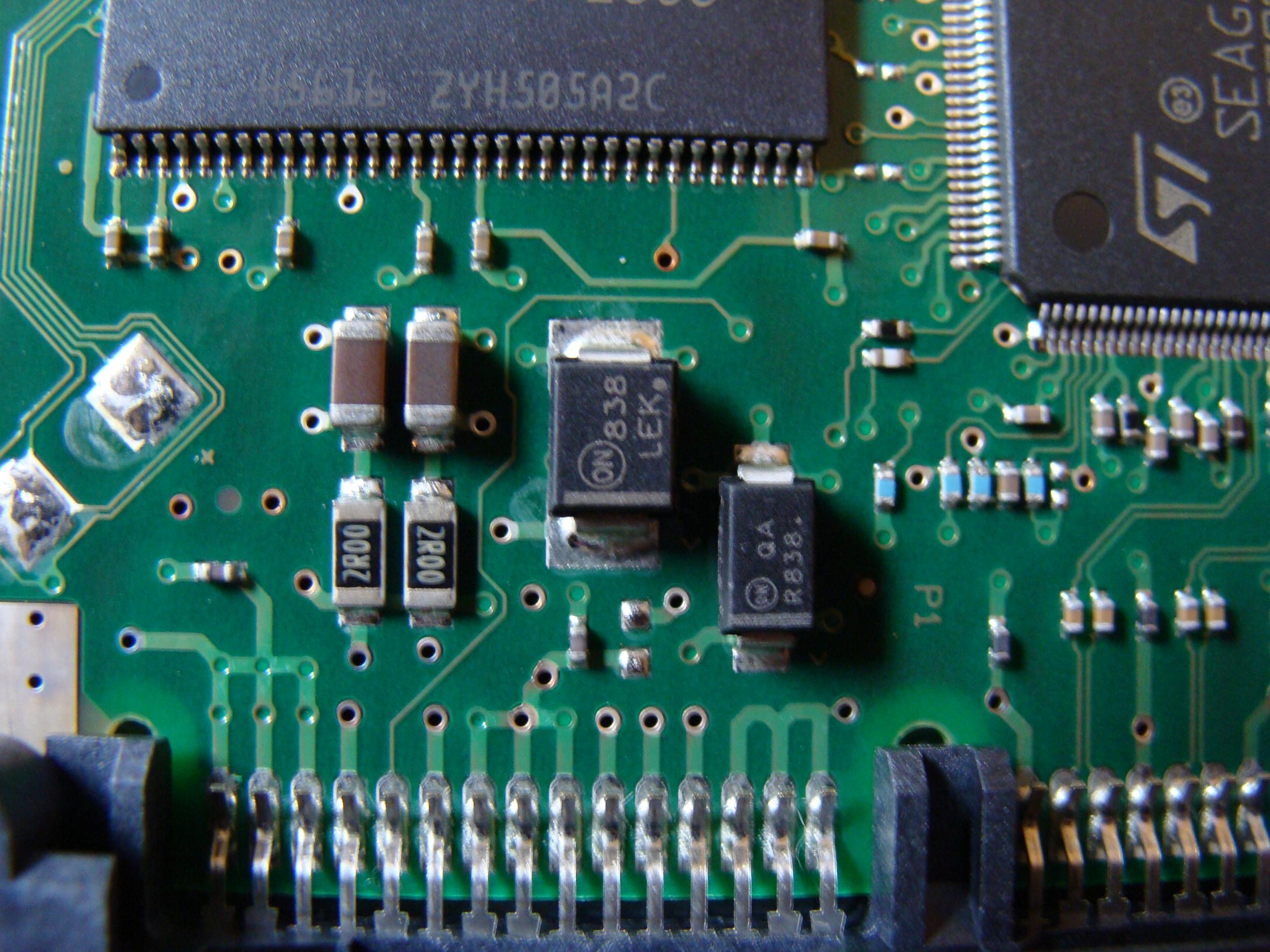 Oder kann es auch sein, dass im Plattengehäuse ebenfalls eine Schutzdiode dafür verantwortlich ist und diese raus gehört?