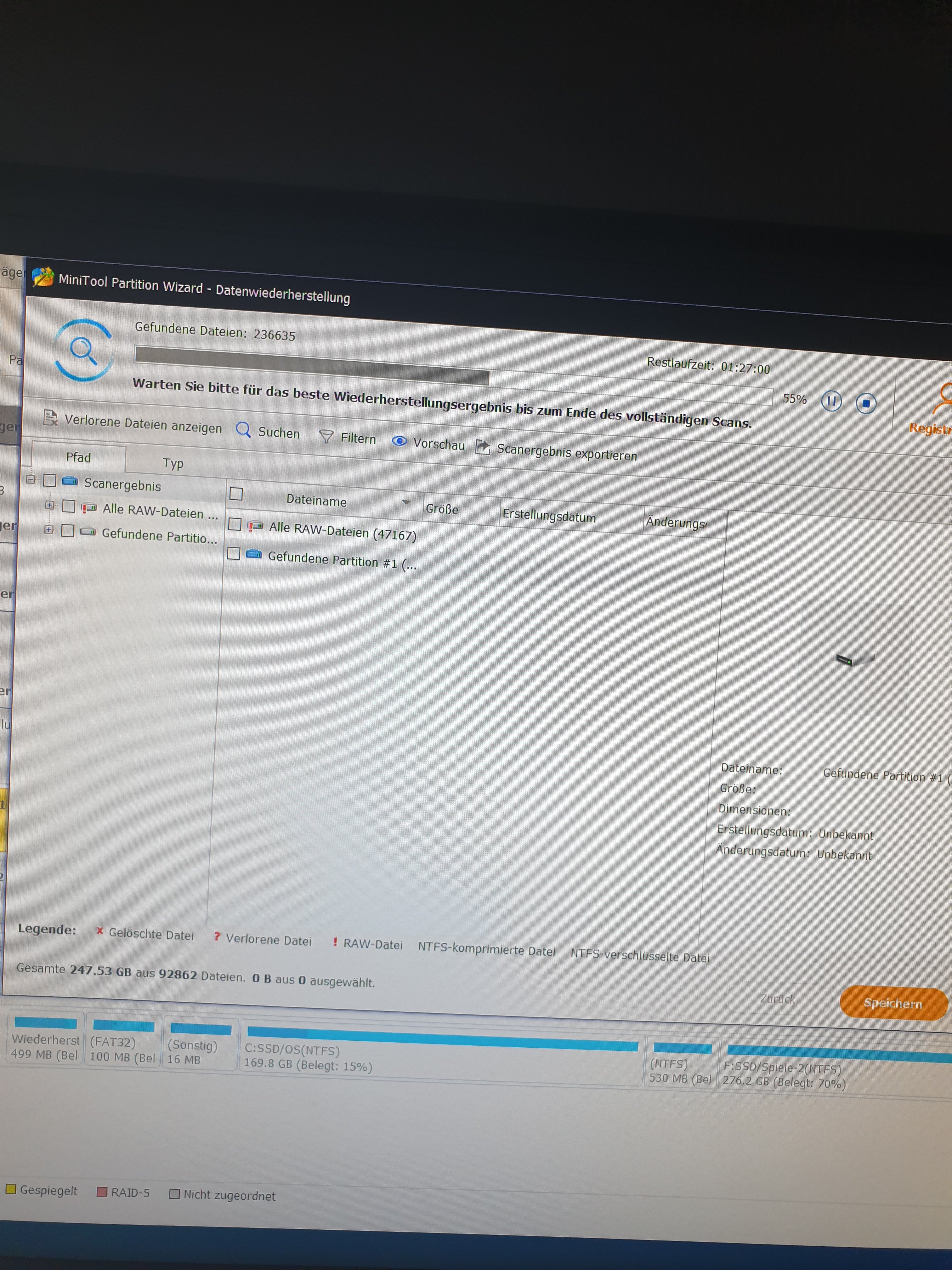 Das Problem ist das seit dem meine alte HDD(1Tb) nicht mehr vorhanden ist. Im Bios und bei Datenträgerverwaltung usw. steht sie da. Allerdings ohne Speicherangabe.