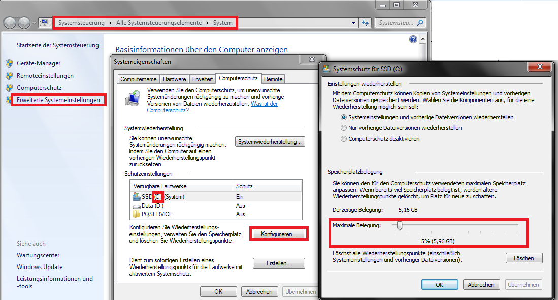 C: ist mit 123 Gb veranschlagt. Davon sind laut "Arbeitsplatz" 112 Gb belegt. Sie wird also rot angezeigt.