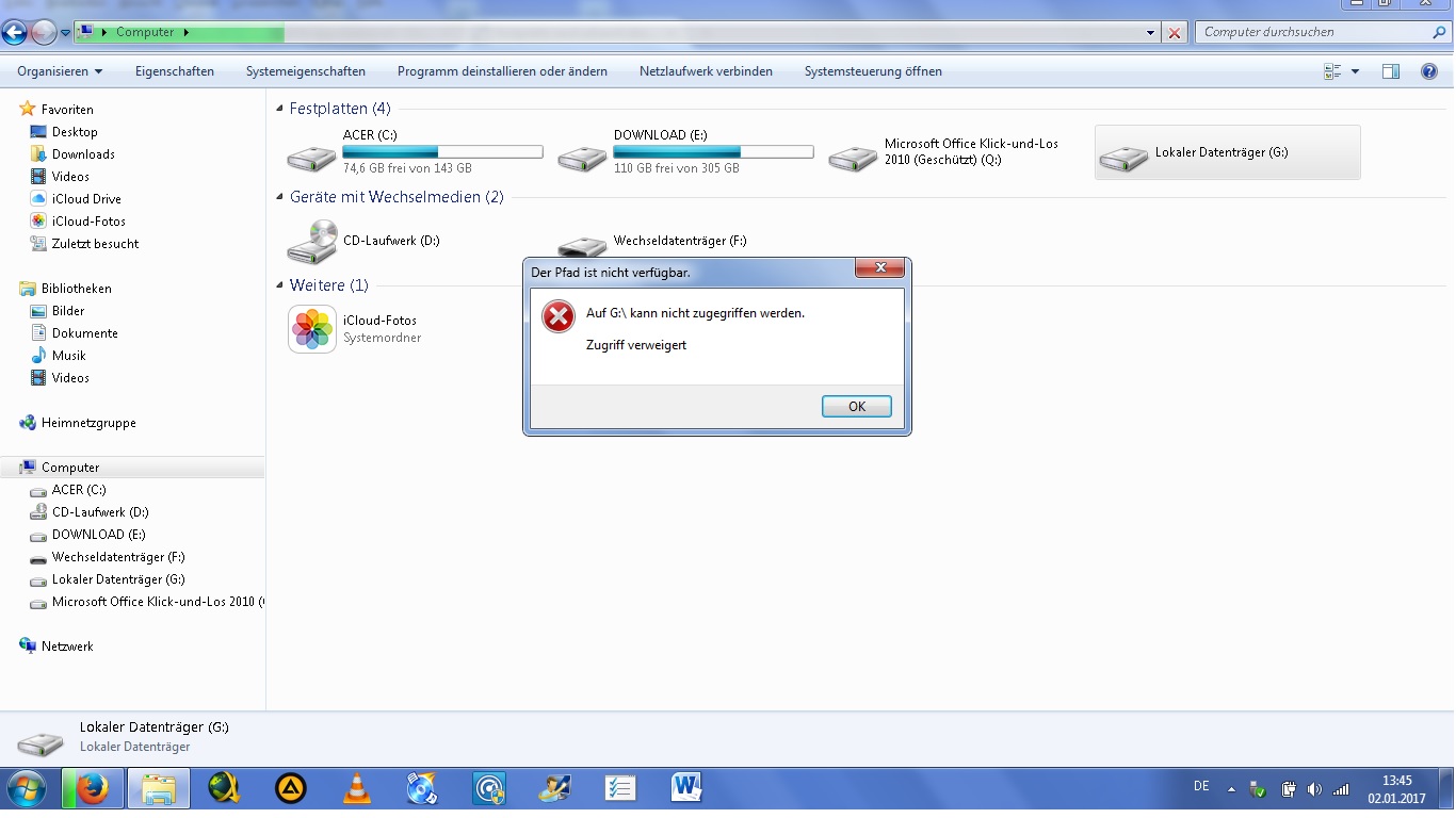 Wenn ich die HD an den Rechner wo sie vorher verbaut war über eine Dogingsation anschliese erkennt der Rechner die HD zwar mit der richtigen Bezeichnung, aber der Zugriff wird trotzdem verweigert.