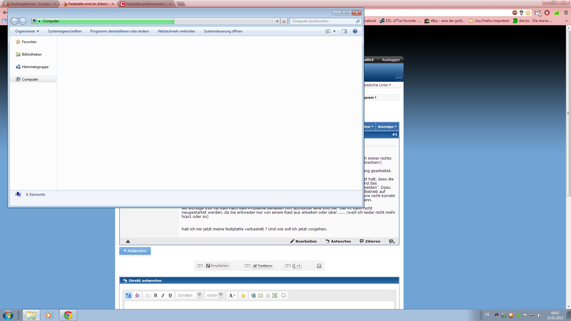 Schließlich war die platte komplett leer und ich konnte wieder alles einrichten. Das Problem ist jetzt halt, dass die Festplatte irgendwie sehr langsam ist und auch schlecht reagiert, ich habe ständig eine Eieruhr und das Hoch/Herunterfahren dauert ewig oder er lässt sich gar nicht herunterfahren und verweilt im "abmelden". Dazu kommt, dass die Festplatte beim Start im Arbeitsbereich exakt angezeigt wird, aber sobald ich im Betrieb auf Computer klicke, ist alles leer und an den Seiten eine Lupe, was zeigt, dass die Festplatte irgendwie nicht korrekt angezeigt wird. bin echt ratlos und erhoffe mir von euch Ansätze, wie ich das Problem beheben kann.