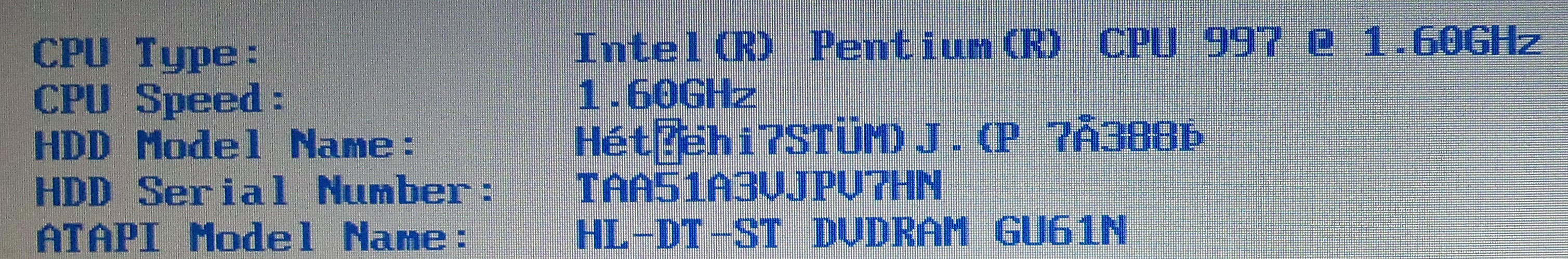 Nach einem Reboot habe ich jetzt folgenden (lt. Bild) völlig verstümmelten Festplatten-Typ im BIOS stehen.