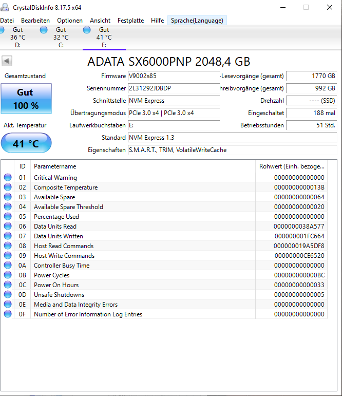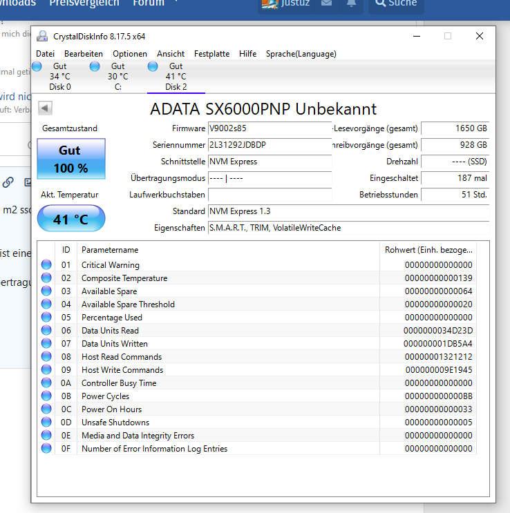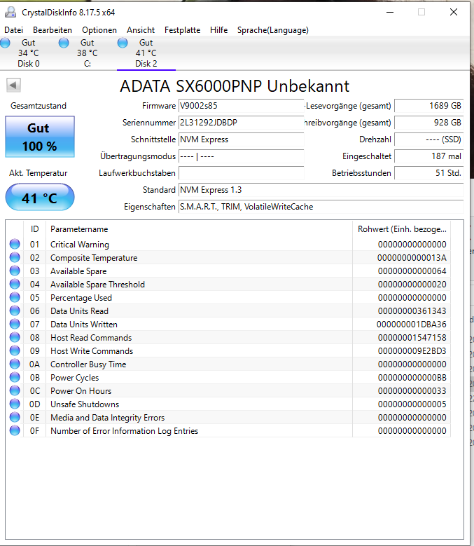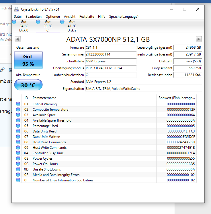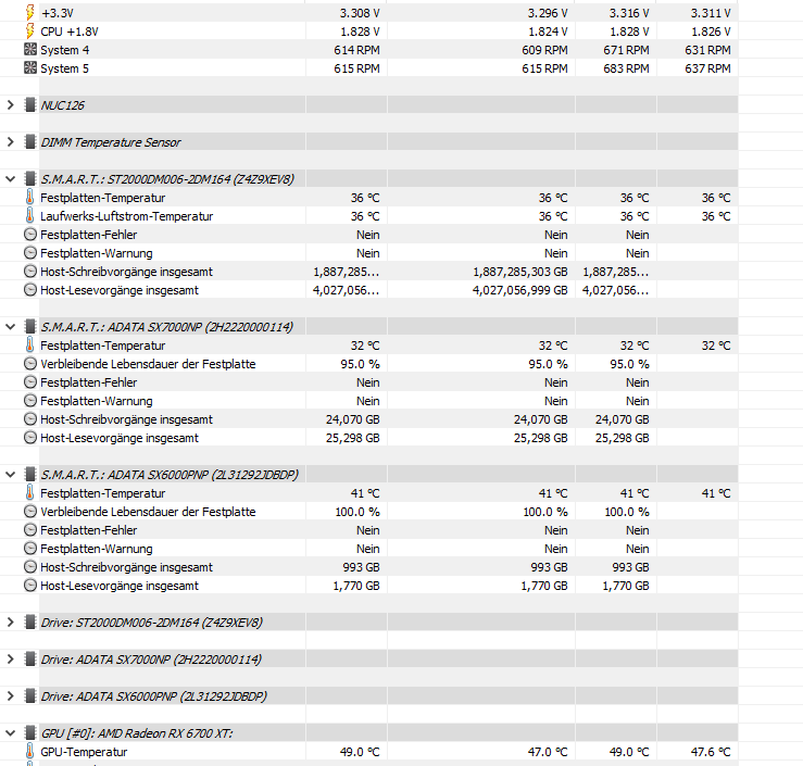 System ist ein 5600x und ein MSI b550 A PRO, es ist eine ADATA SX6000PNP 2TB und eine ADATA SX7000NP 512,1 GB verbaut. und eine 2tb hdd.
