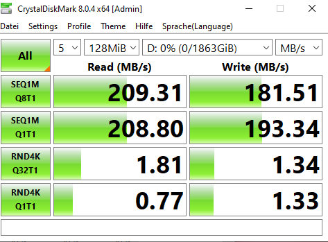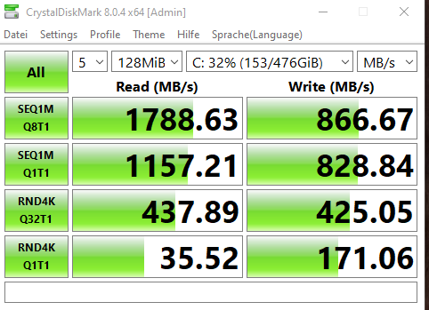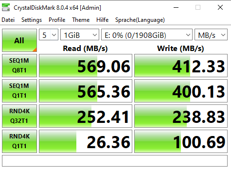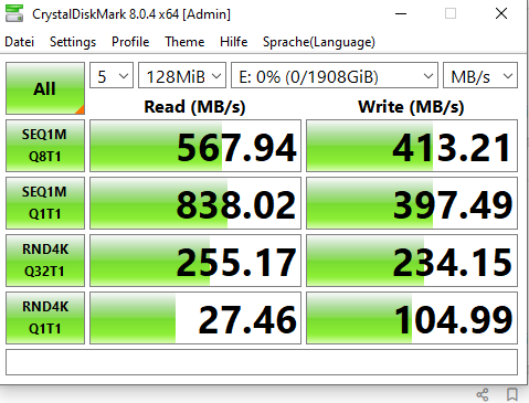 Bei Crystal Disk mark bekomme ich im reiter Übertragungsmodus auch nichts angezeigt, anbei mal screenshots.