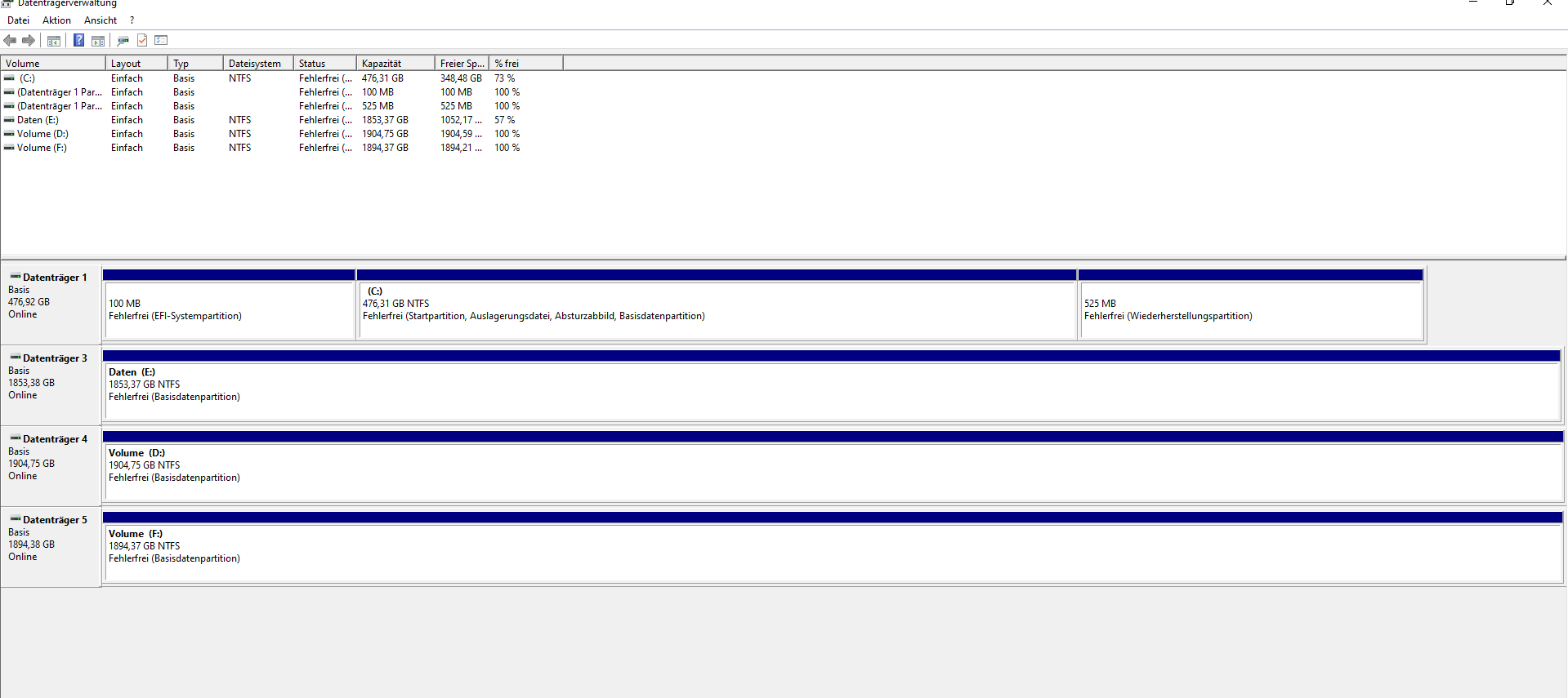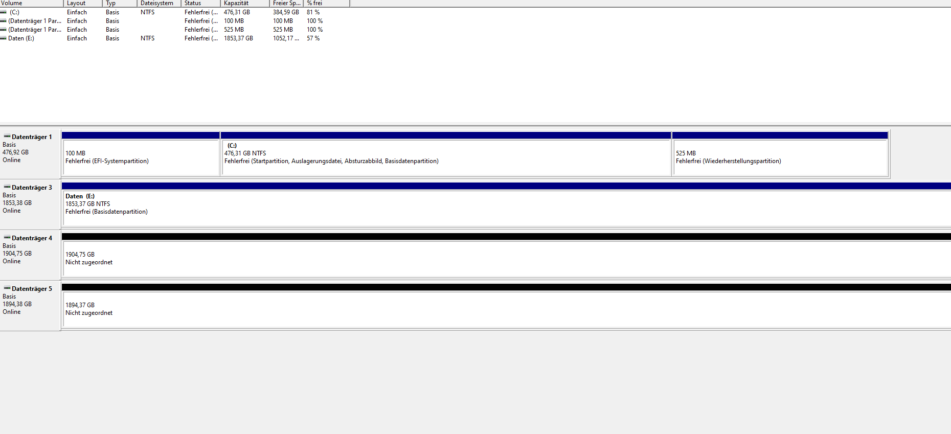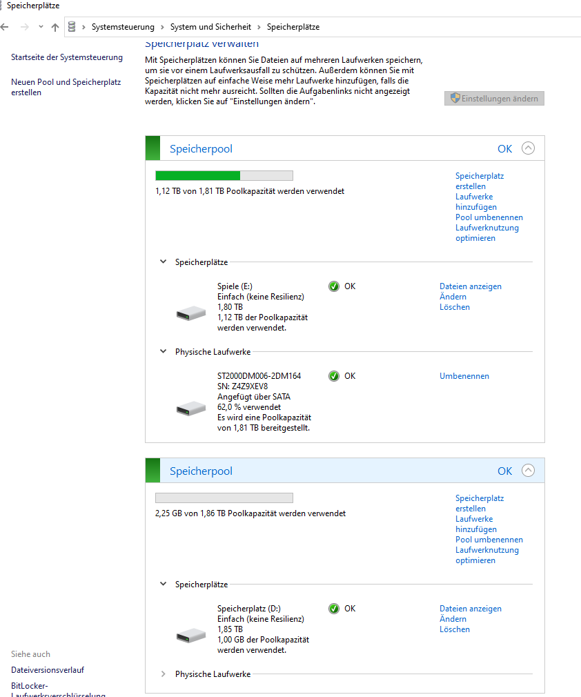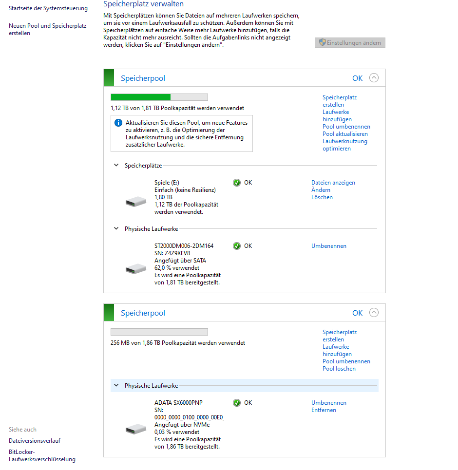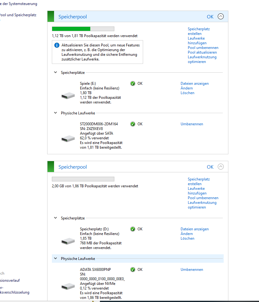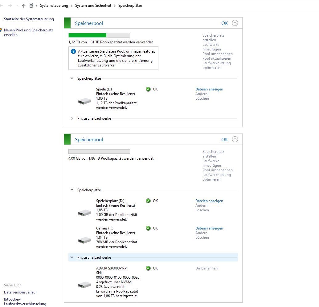 Wenn ich in der Datenträgerverwalting rechtsklick drauf mache und "neues übergreifendes Volume", kann ich zwei partitionen erstellen, ich frage mich wie das sein kann da es eine 2tb m2 ssd ist. Diese wird mir aber irgendwie zwei mal angezeigt...