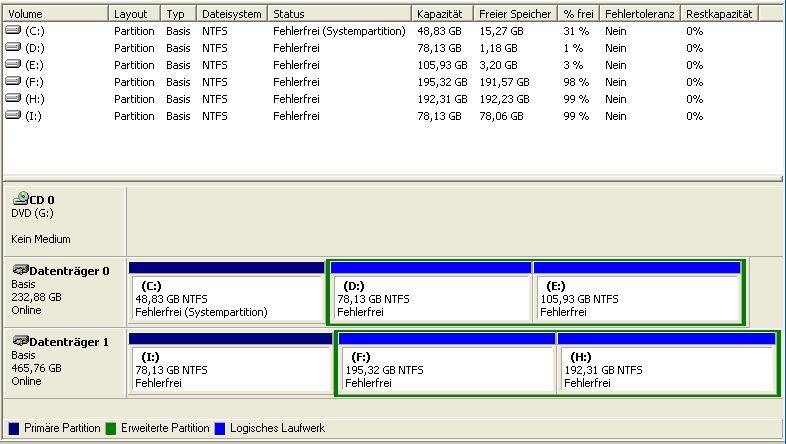 Da dort vorher keine Partition vorhanden ist, haben sich die anderen Laufwerksbuchstaben nach vorn verschoben.