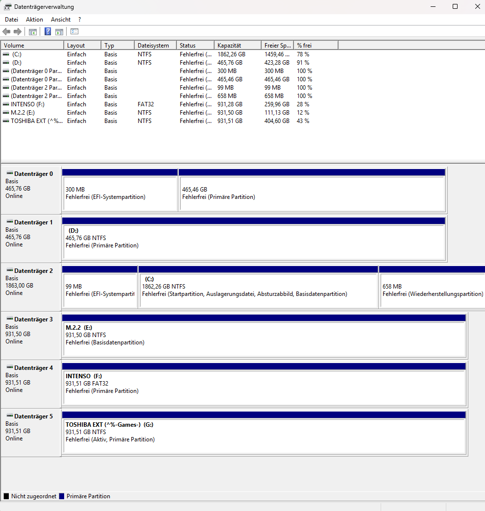 @Volume Z Komme bei Schritt 1 schon nicht weiter, weil in der Datenträgerverwaltung kein Y angezeigt wird.