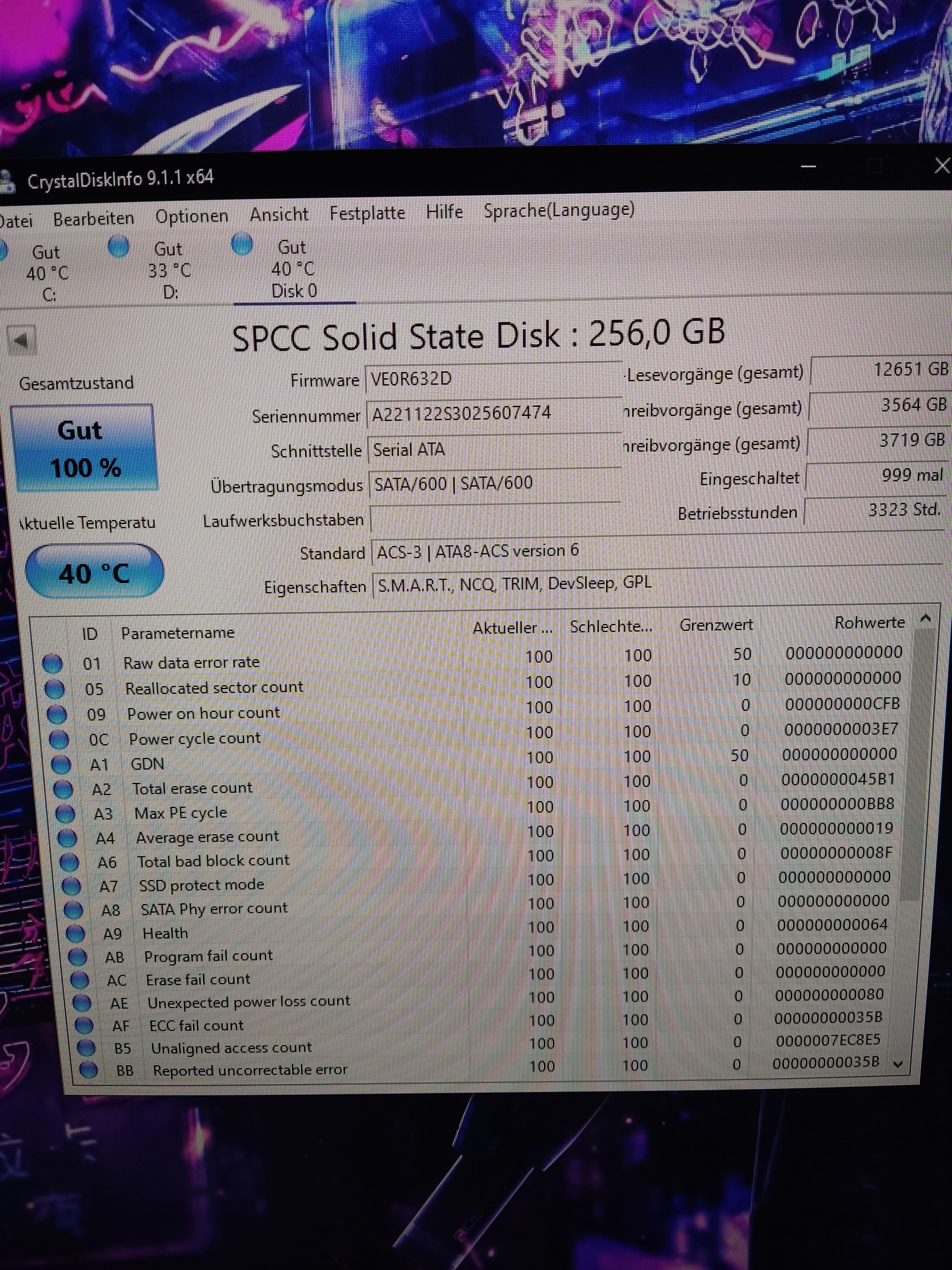 Habe 3 SSDs und die 3 bereits in 2 PC getestet bei beiden erscheint diese Meldung und wen ich weiter klick steht da Fehlermeldung ich hab keine Ahnung was das ist oder wie ich das beheben kann oder ob die SSD defekt ist jetzt