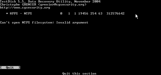 Lade dir auch mal die Dosversion von Testdisk von der Hompage.