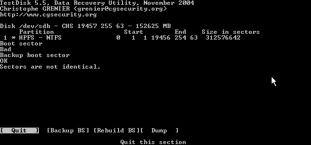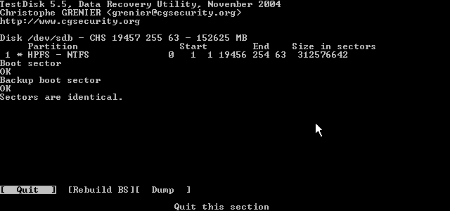 also hab ich am anfang chdsk laufen lassen, hat ziemlich lange gedauert