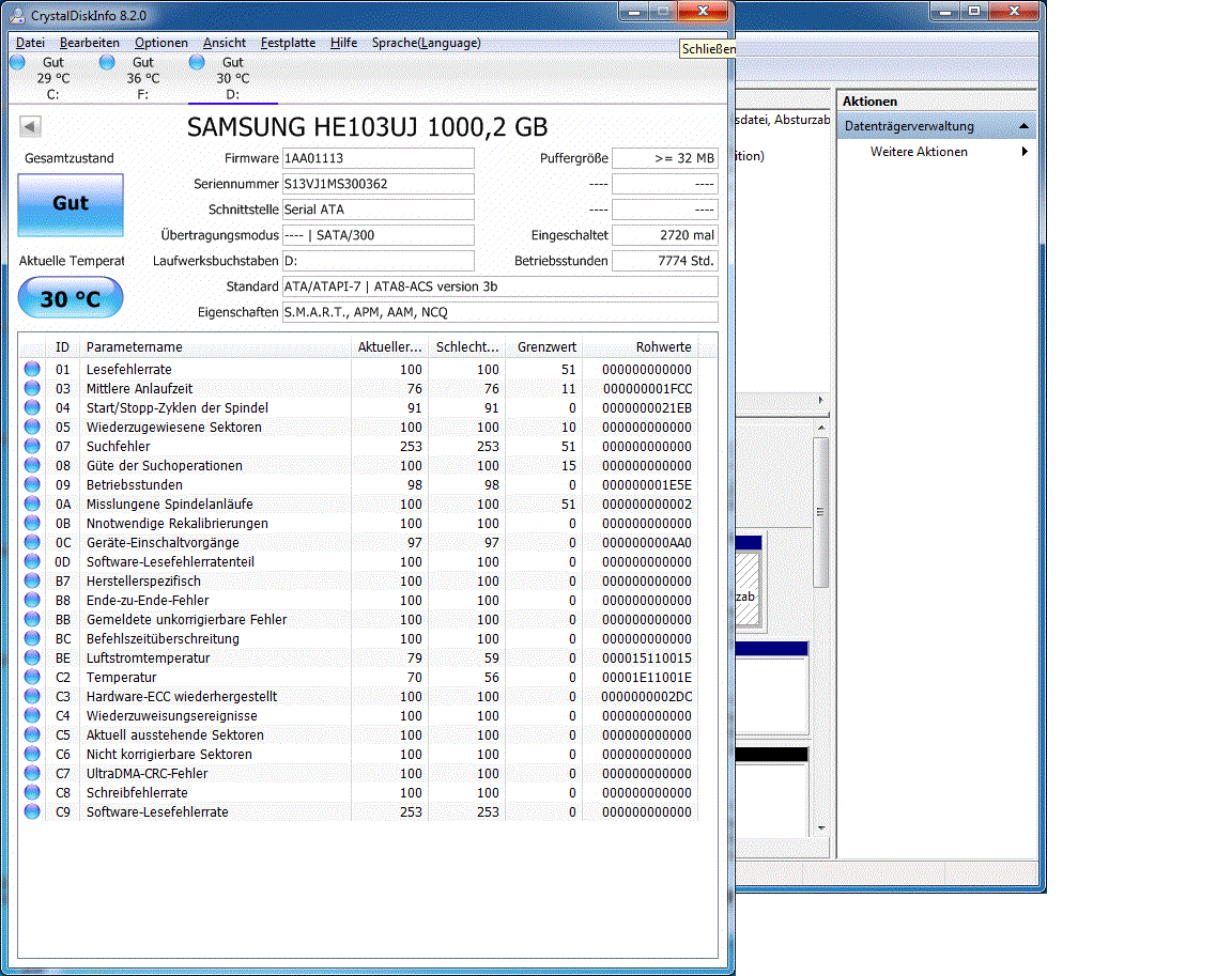 Im Gerätemanager ist sie zu sehen. Ebenso in der Datenträgerverwaltung. Dort erscheint sie aber nicht oben, sondern nur unten als "Nicht zugeordnet. Zum Test habe ich - über Rechtsklick "neues einfaches Volumen" eine kleine Patition erstellt. Diese erscheint dann auch oben. Der Computer erkennt die Festplatte also - aber eben nicht so, dass ich an die Daten komme.