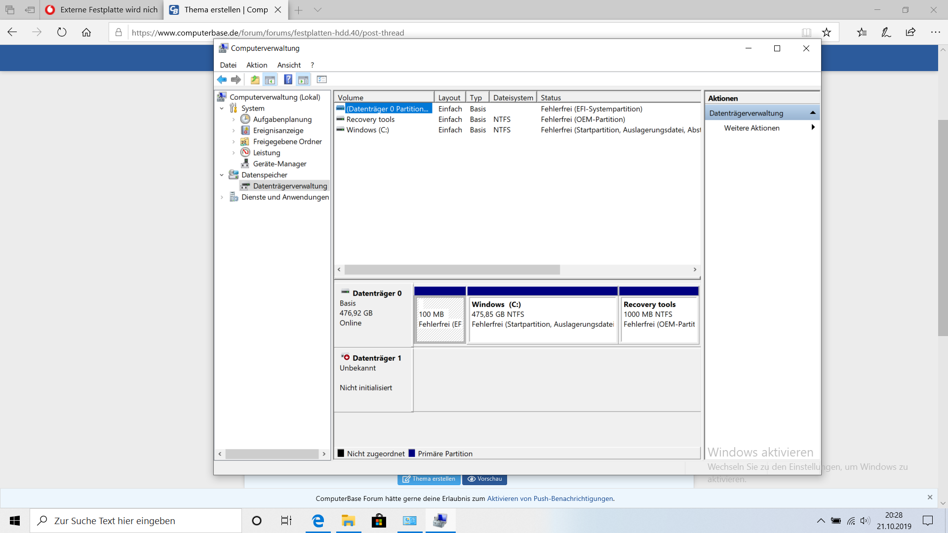 Festplatte wird von Windows ^10 nicht erkannt