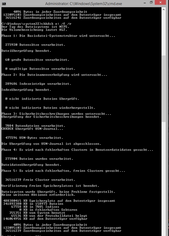 chkdsk ergab folgendes Ergebnis: