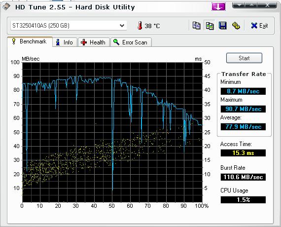 Die Festplatte ist eine 250GB Seagate ST3250410AS Barracuda 7200.10 SATA2 16MB.