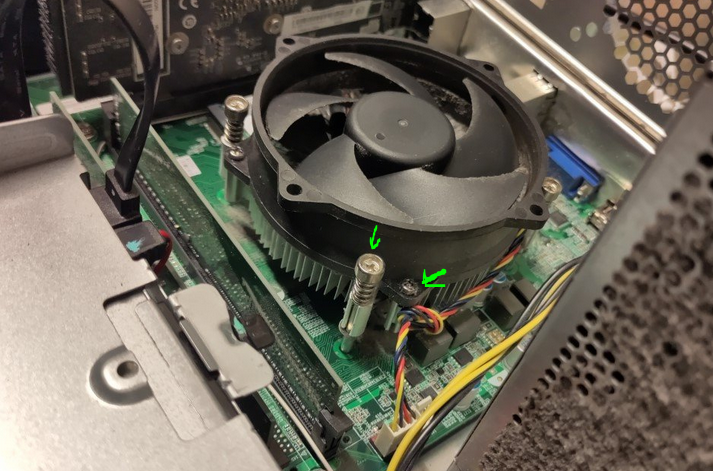 Der Kühler sollte gesäubert werden, sonst schaltet sich der PC wegen Überhitzung gleich wieder ab beim Start.