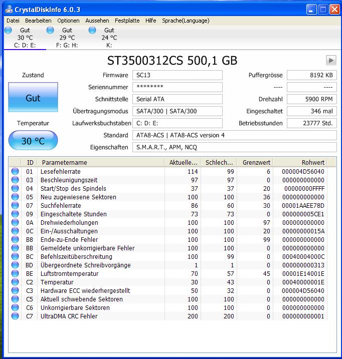 Im Windows bestehen die Festplatten die Kurzzeit- und Langzeittests problemlos.