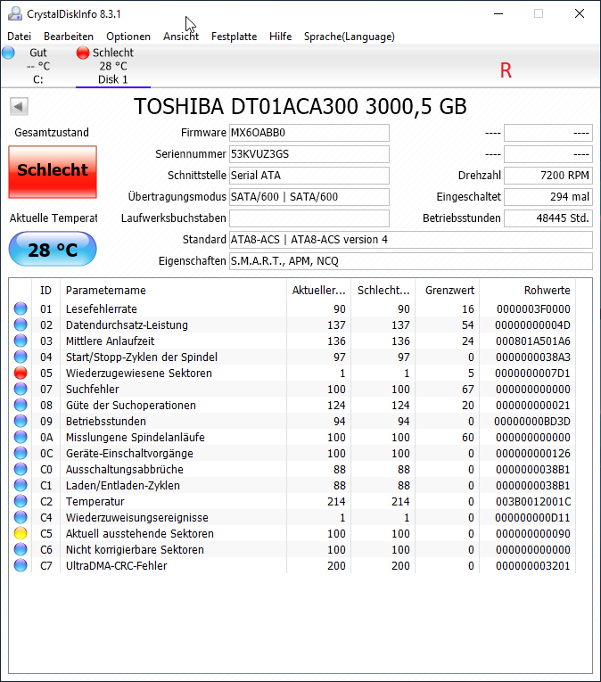 Im zweiten Schritt möchte ich die Festplatten neu formatieren und ?danach? feststellen (z.b. über SMART?) was genau denn nun da defekt ist und ob man es reparieren (?Sektoren schließen?) kann oder die Festplatte hinüber ist. Dazu benötige ich auch Informationswebseiten, Artikel und Tutorials, die mich darüber aufklären was die einzelnen SMART-Werte denn nun bedeuten, z.b. was schwebende Sektoren sind usw.