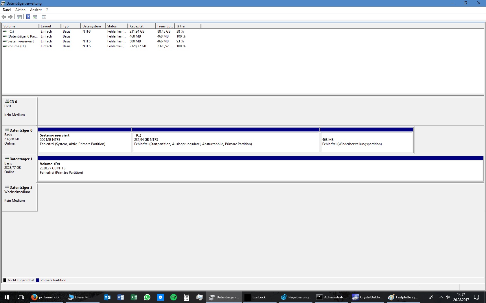 ich habe von meinen Festplattenreceivern die beiden Festplatten aus- und in meinen Windows PC eingebaut. Nun ist es so, dass diese die gleichen Seriennummern besitzen und Windows somit immer nur eine, aber nie beide Festplatten erkennt. Wie lässt sich das Problem beheben? Unter Linux werden beide Festplatten vollständig erkannt.